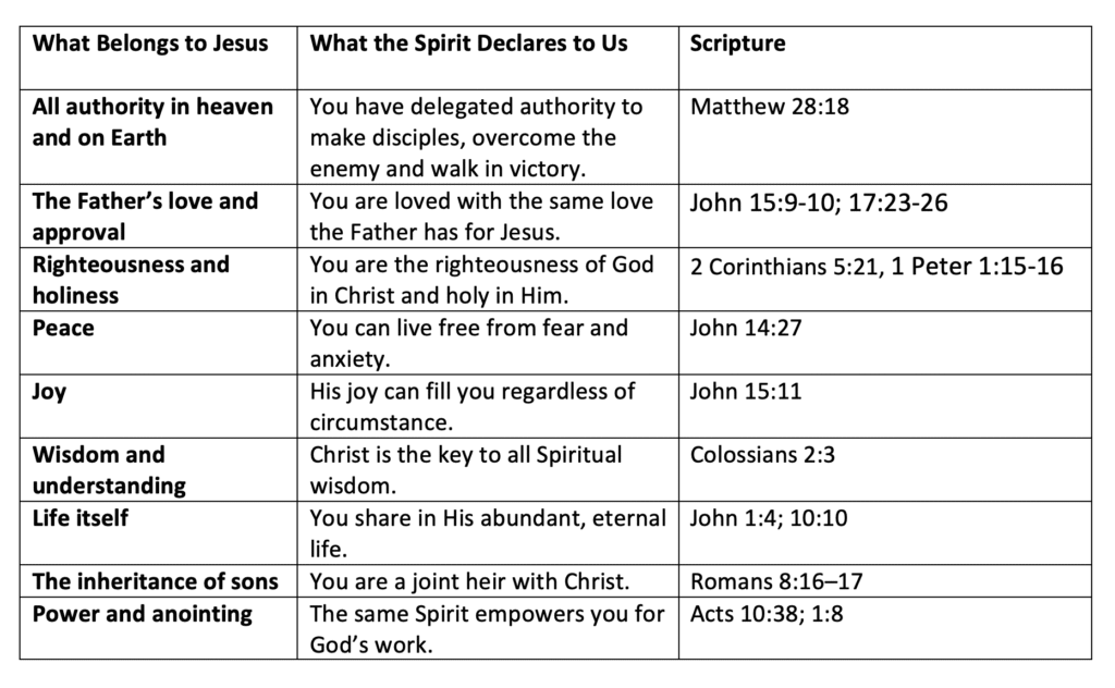Treasures in Jesus that the Holy Spirit Declares to Us (John 16:12-14): https://takebackyourtemple.com/wp-content/uploads/2025/10/What-Belongs-to-Jesus-that-the-Holy-Spirit-Declares-to-us.pdf